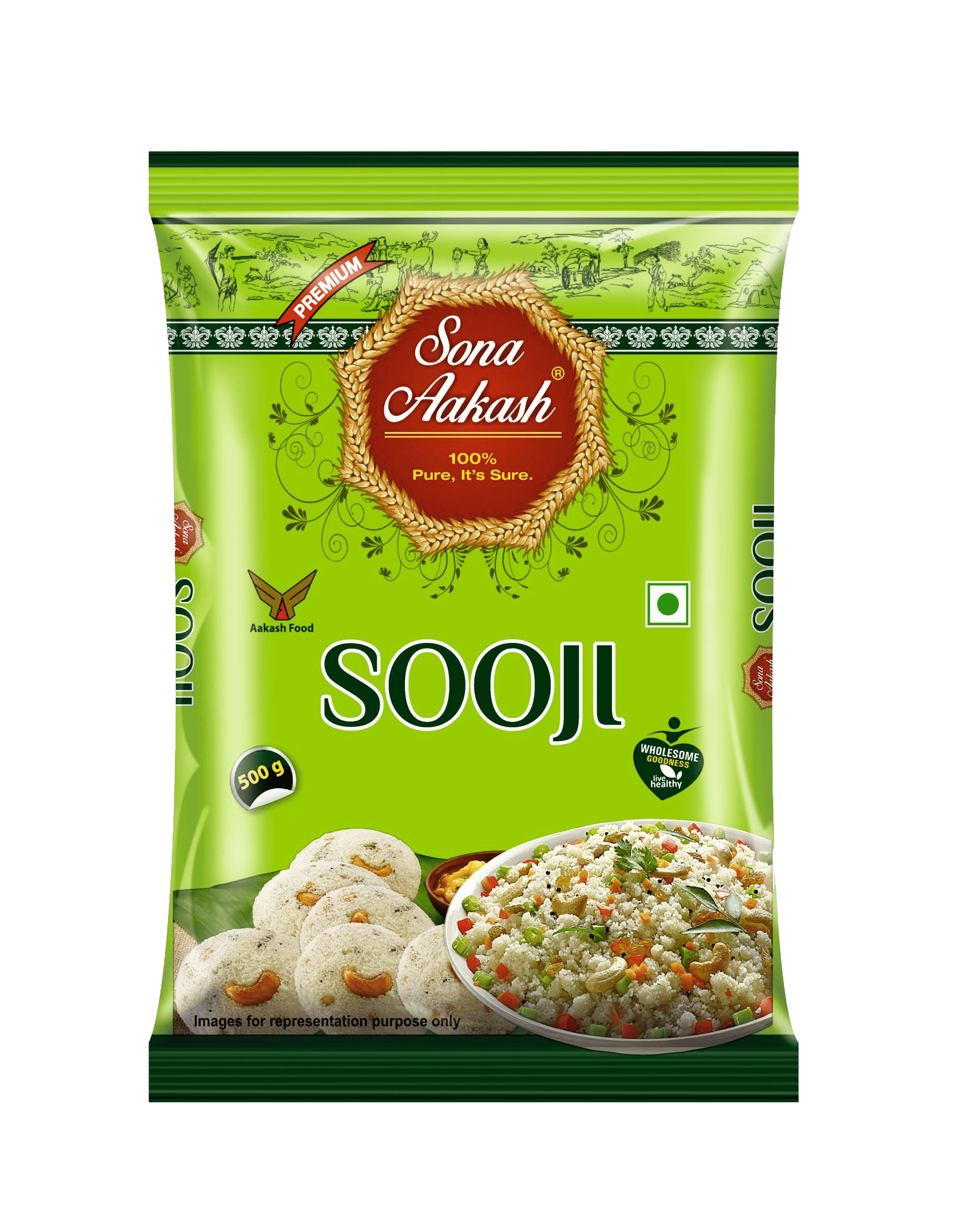 Taste the symphony of consistency with Sona Aakash Sooji. Interestingly, Sooji is in reference to the texture and consistency of the milled grain. Semolina by Sona Aakash has no impurities and is roasted to boost flavour; it also cuts down the prep-time. Made from 100% hard Durum Wheat!