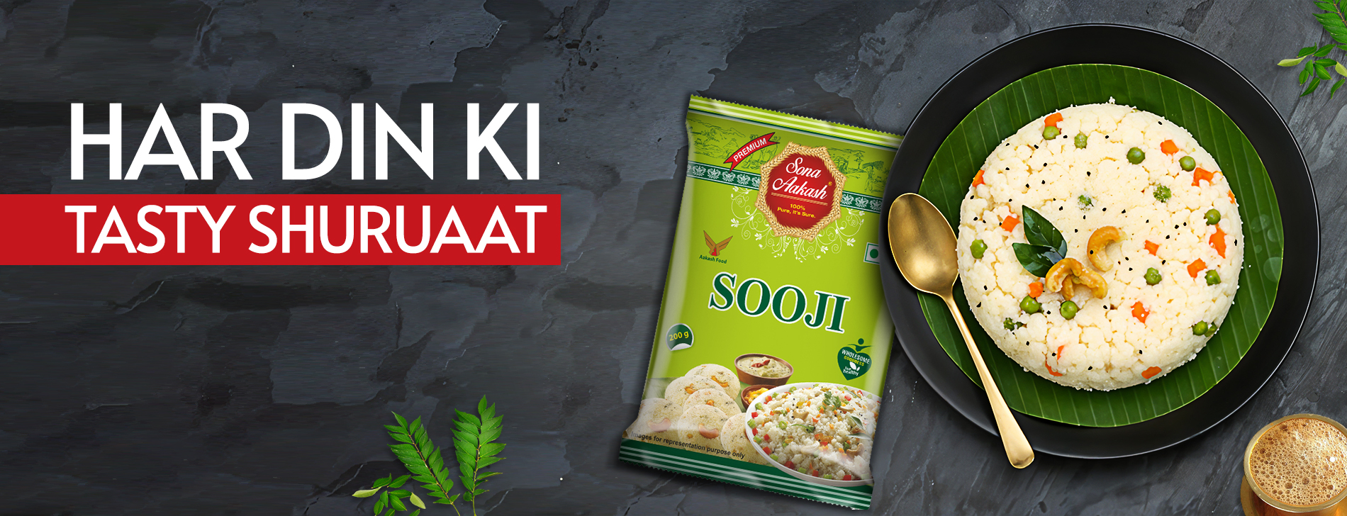 Taste the symphony of consistency with Sona Aakash Sooji. Interestingly, Sooji is in reference to the texture and consistency of the milled grain. Semolina by Sona Aakash has no impurities and is roasted to boost flavour; it also cuts down the prep-time. Made from 100% hard Durum Wheat!