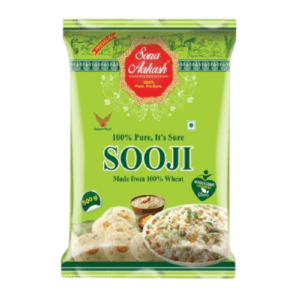 Semolina has three larger varieties based on the size of the granule: course, medium and fine. Sona Aakash Semolina comes in course and medium granule sizes. Before the wheat is refined into flour it is lightly roasted which gives sooji its faintly brown colour.